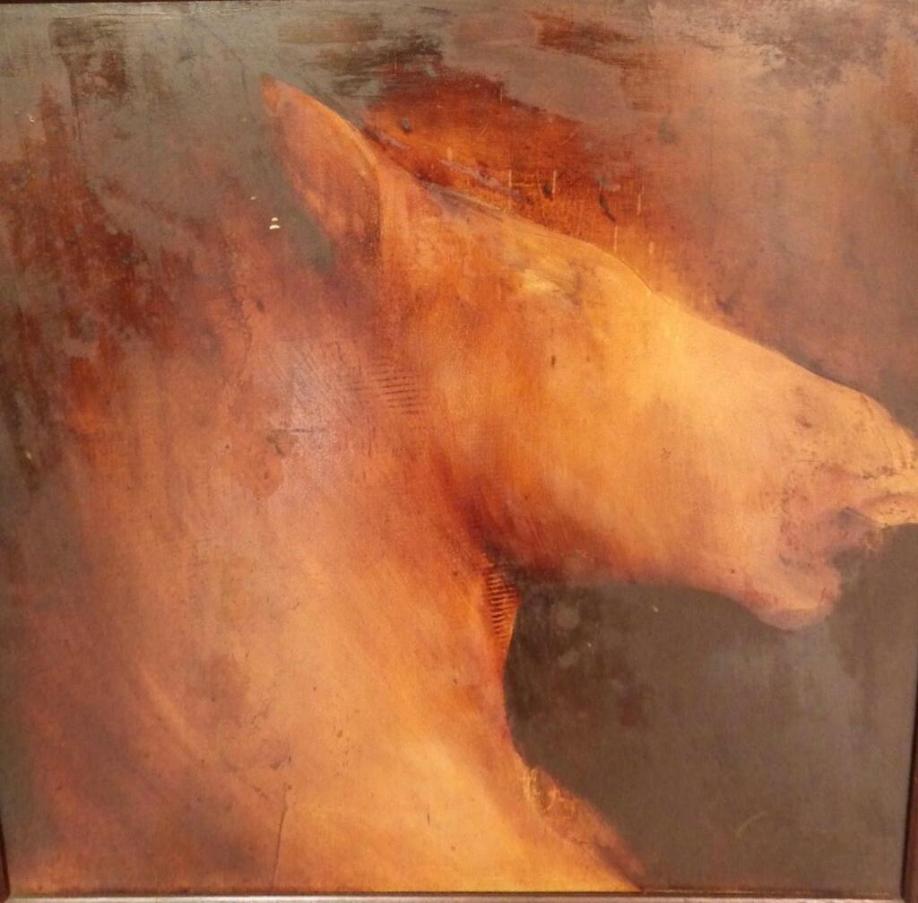 Carlos Araújo, Estudo de Cabeça de Cavalo, óleo sobre madeira, 1982, assinado no canto inferior direito. Medidas 73 x 72 cm. Foto anexa do Certificado de Autenticidade.